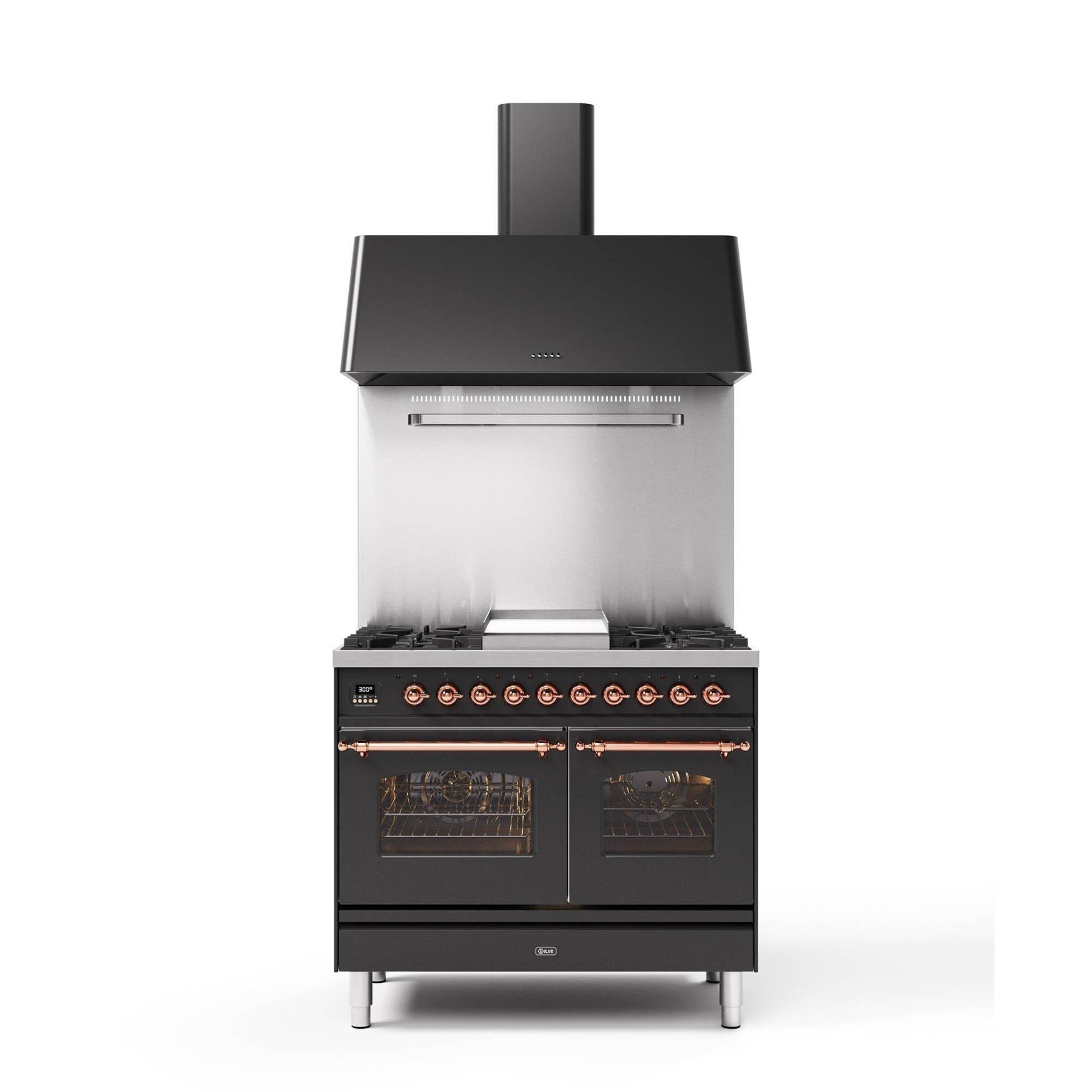 iLVE Nostalgie Dobbelt Komfur - PD10N - 100 cm-Komfur-ILVE-Gas-Sort blank-Køl & Komfur