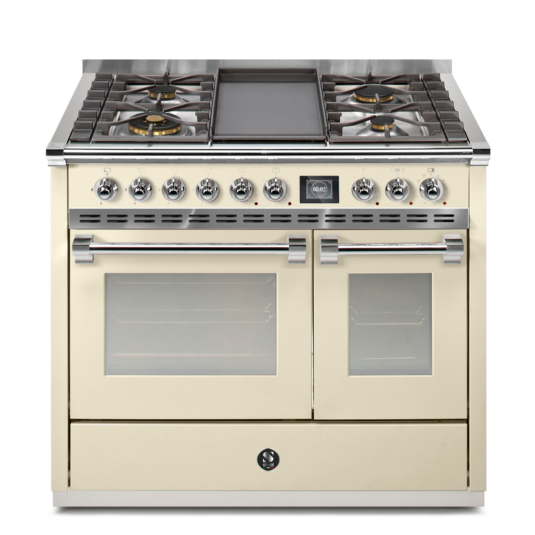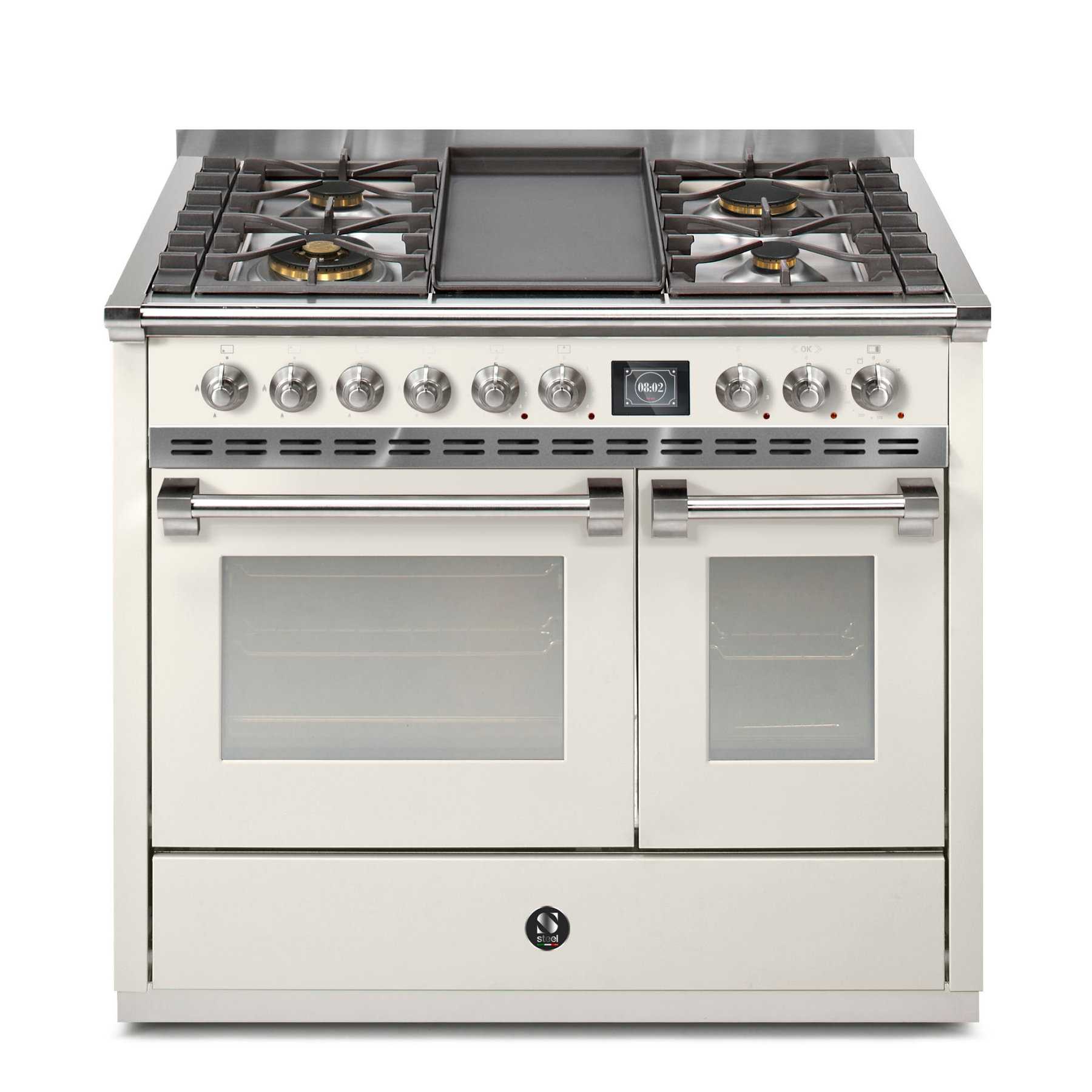 Steel Cucine Ascot 100/2 – hvor elegance møder funktionalitet i dit køkkenrum. Forstærk din kulinariske oplevelse med denne stilfulde og moderne serie, der inkluderer hele to rummelige ovne, skabt til at imødekomme alle dine madlavningsbehov. Fremstillet af høj kvalitets rustfrit stål, kombinerer Ascot 100/2 holdbarhed med en moderne æstetik, der tilføjer et strejf af raffinement til ethvert køkken. Præcis temperaturkontrol og effektiv opvarmning sikrer perfekte retter hver gang. Med en alsidig kogeplade, inklusive forskellige brændere til at imødekomme forskellige madlavningsmetoder, lover dette apparat at være din ultimative madlavningspartner. Oplev madlavningens kunst med Steel Cucine Ascot 100/2 – hvor innovation og design smelter sammen for en gnidningsfri og fornøjelig madlavningsrejse.