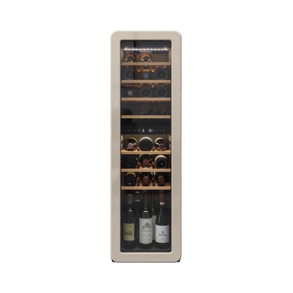 Med sin elegante front, UV-beskyttet glasdør og vibrationsfri kompressor kombinerer NVD90-24S æstetik med funktionalitet. Træhylderne giver et klassisk udtryk, mens LED-belysningen fremhæver din vinsamling på smukkeste vis. Perfekt til både moderne og klassiske køkkener, hvor design og ydelse går hånd i hånd.