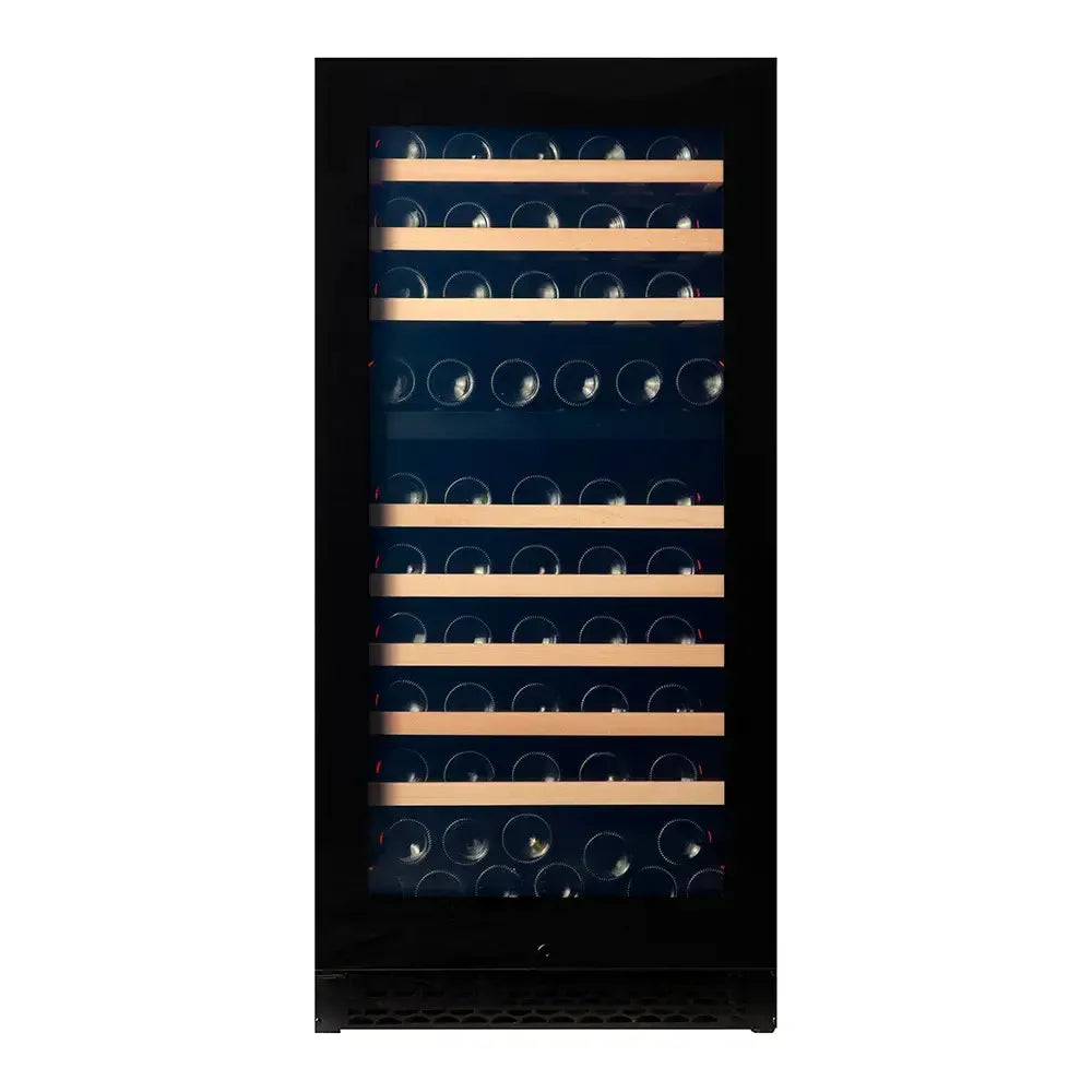 Den sorte glasfront med energivenligt LOW-E glas giver et moderne look og sikrer samtidig minimal energiforbrug. Embraco Inverter-kompressoren holder både temperatur og lydniveau stabilt, med støj helt ned til 36 dB. Et integreret alarmsystem overvåger temperaturen og giver besked, hvis døren ikke er lukket korrekt.