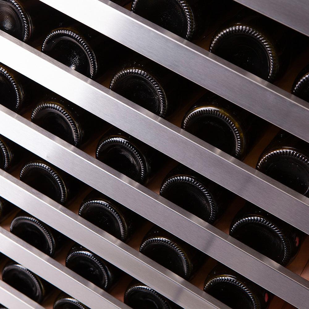 Flaskerne placeres på fuldt udtrækkelige hylder i bøgetræ, som kan vælges med trim i træ, sort aluminium eller rustfrit stål. Indvendig LED-belysning i hvid, blå eller orange skaber en flot præsentation og giver et eksklusivt udtryk, når døren åbnes.