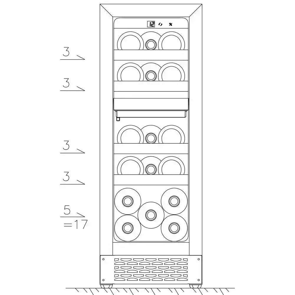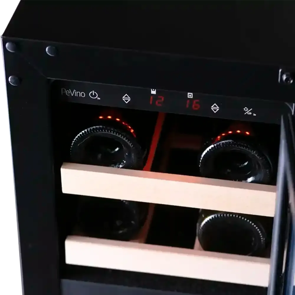 Et indbygget alarmsystem overvåger temperaturen og giver besked, hvis døren ikke er lukket korrekt. Pevino Majestic 17 kombinerer dansk design, høj kvalitet og avanceret teknologi – en perfekt løsning til vinelskeren med mindre plads.