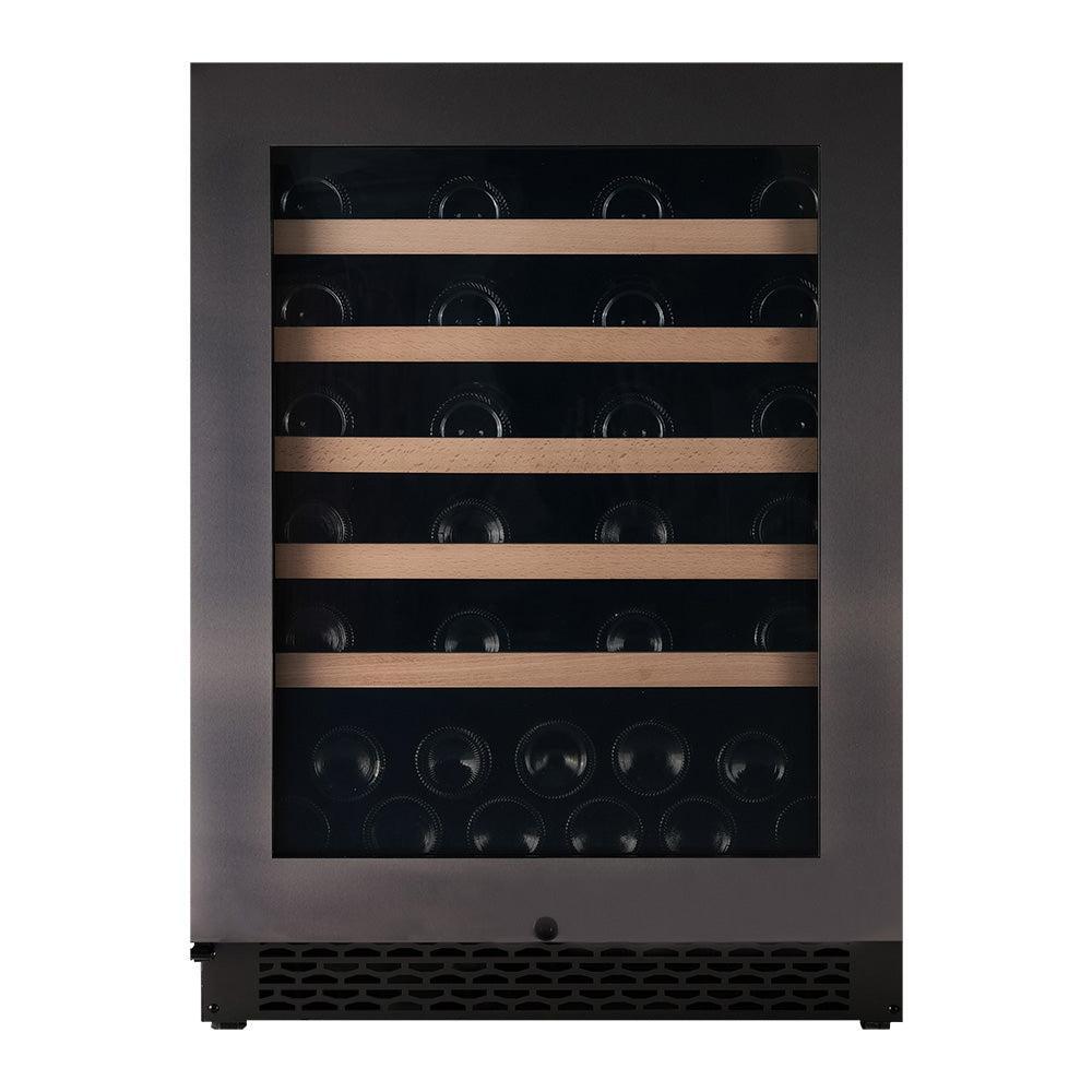 Det stilrene design med rustfri stålfront og energivenligt LOW-E glas gør modellen både elegant og effektiv. Vinen placeres på fem fuldt udtrækkelige hylder i bøgetræ, som kan fås med trim i enten træ, sort aluminium eller rustfrit stål. LED-belysning i hvid, blå eller orange skaber en flot præsentation af din vin.